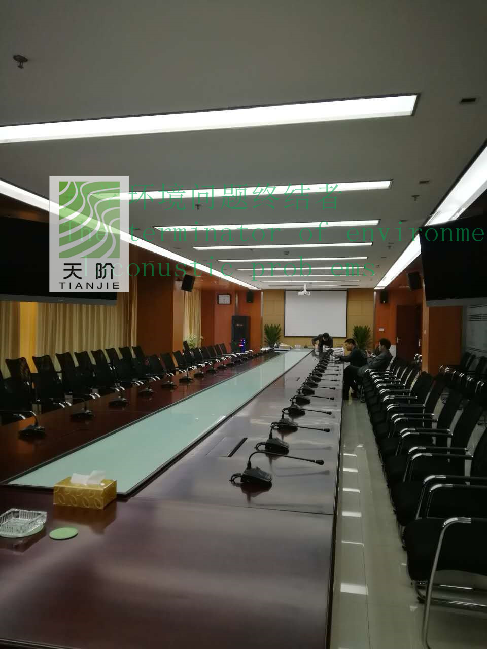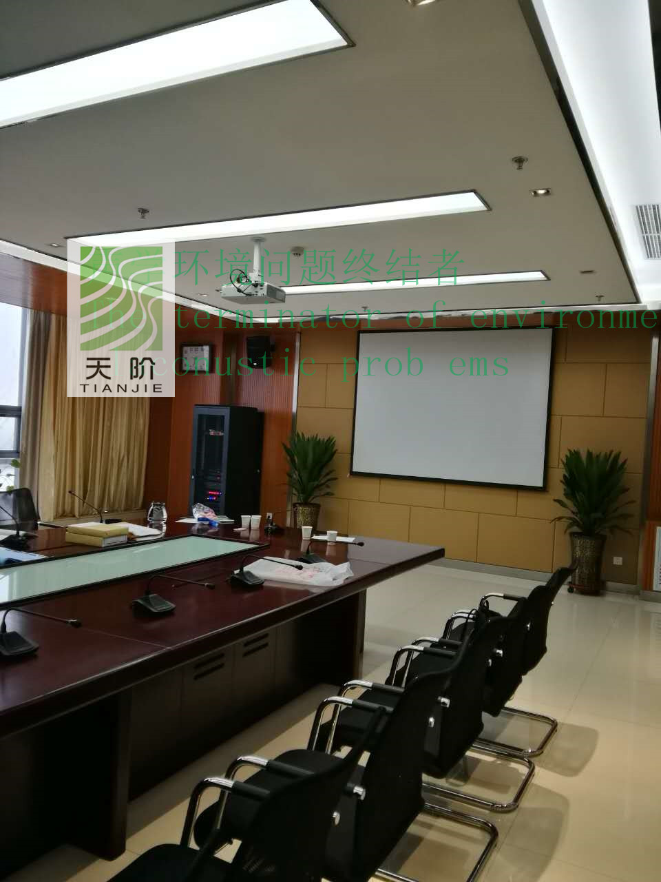山西大運(yùn)汽車(chē)制造公司辦公樓為了塑造良好安靜的辦公環(huán)境,使用了天階牌槽木吸音板1000平方,吸音軟包400平方