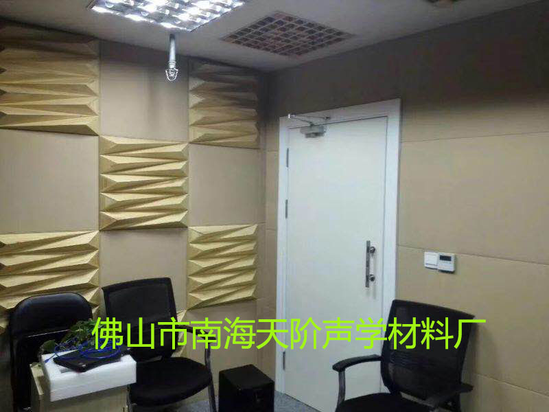 隔音門厚約100mm,內(nèi)填雙層50mm玻璃棉, 兩層中間用一塊五和板加以固定,以防止玻璃棉向門體底部沉落。門體的兩面在用薄鋼板封裝固定后,用海綿、人造革包裝門面,最后用門面泡釘固定。鋼架門框與鋼架門體之間在尺寸設計上要留有空隙,然后選擇厚度合適的隔音密封膠條固定在門體鋼架的上,要求門關(guān)上后,膠條與門 體、門框接觸緊密不透氣,咬合整齊,彈性合適, 開關(guān)不費力。門軸、門鎖處也應注意密封。