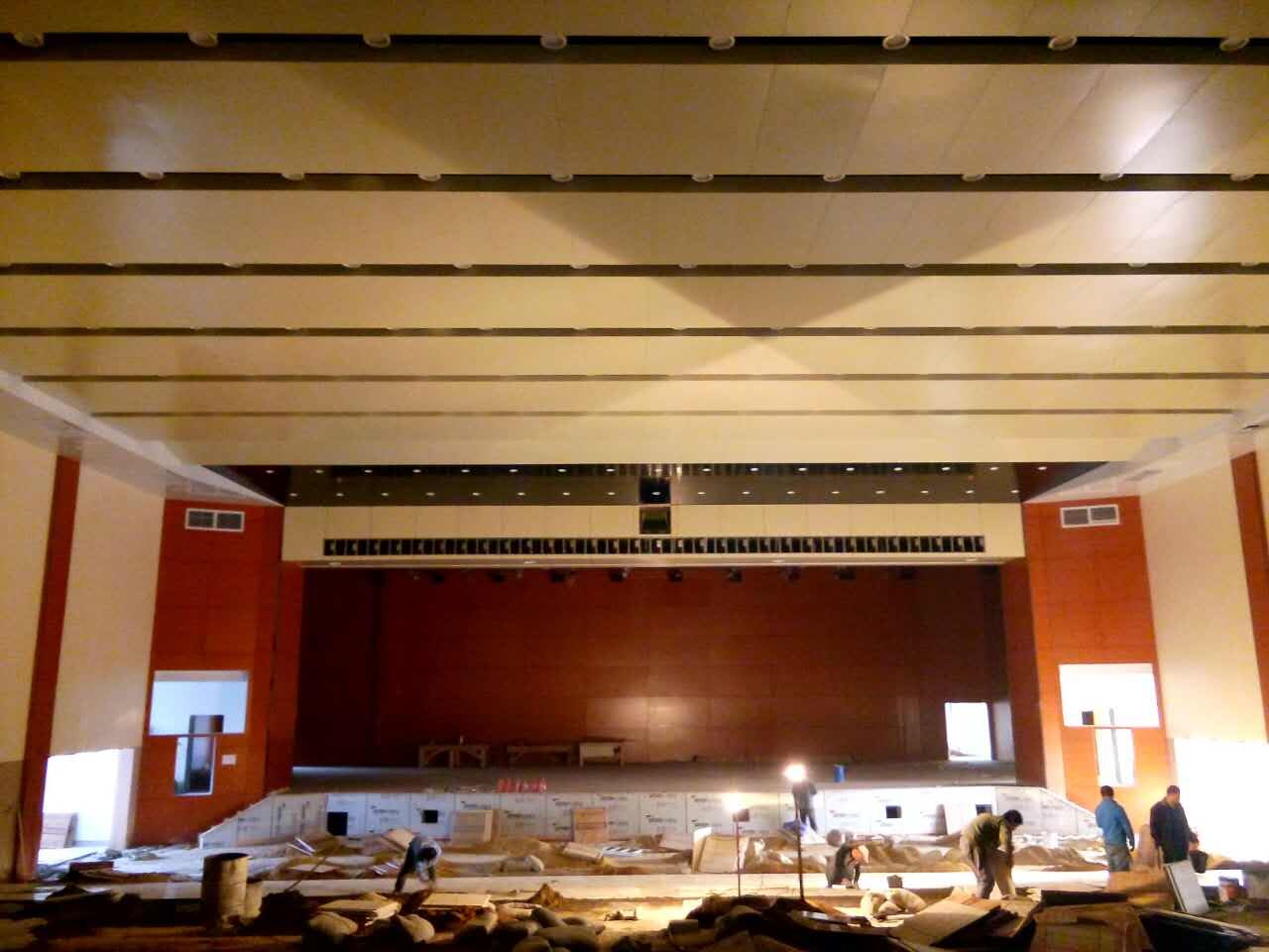 山東濱州濱化報(bào)告廳墻面吸音板,木質(zhì)槽木吸音板28/4紅櫻桃阻燃吸音板500平方,E32/8孔木吸音板600平方,現(xiàn)已經(jīng)完工,具體吸音板效果如下