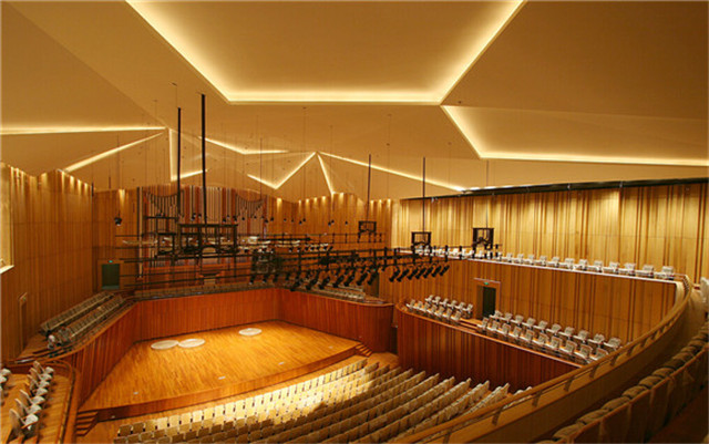 音樂廳聲學(xué)設(shè)計(jì)音質(zhì)的措施:大空間。與廳內(nèi)吸音材料選擇有關(guān),選用材料應(yīng)能控制振動(dòng),若選用木板材,厚度宜為8cm