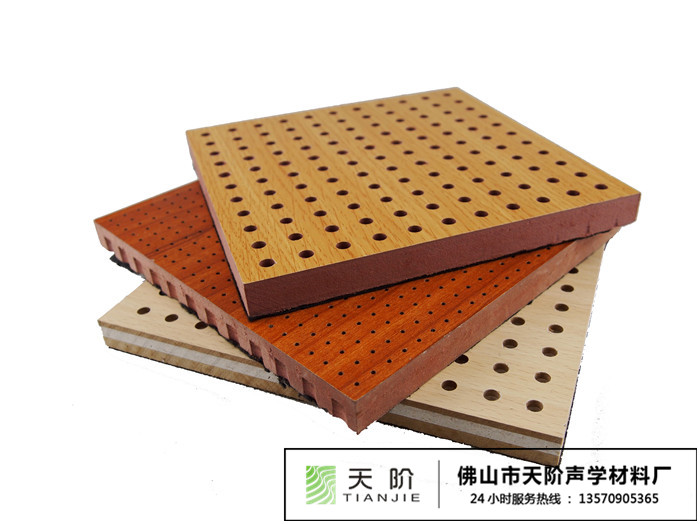 1、木質(zhì)吸音板:木質(zhì)吸音板是一種在密度板正面開槽,背面穿孔的狹縫共振吸聲材料。對吸聲頻譜選擇性很強(qiáng),木質(zhì)吸音板對中低頻有很好的吸音性能。如在吸聲結(jié)構(gòu)后空腔上填入適量的吸聲棉可提高中、高頻的吸聲效果。天階聲學(xué)木質(zhì)吸音板采用優(yōu)質(zhì)的板材,最高具有E1環(huán)保、A2級防火、防水等性能,飾面顏色及材料選擇性廣,能滿足客戶多樣化的選擇。較槽木吸音板,孔木吸音板相對抗撞擊能力強(qiáng)。