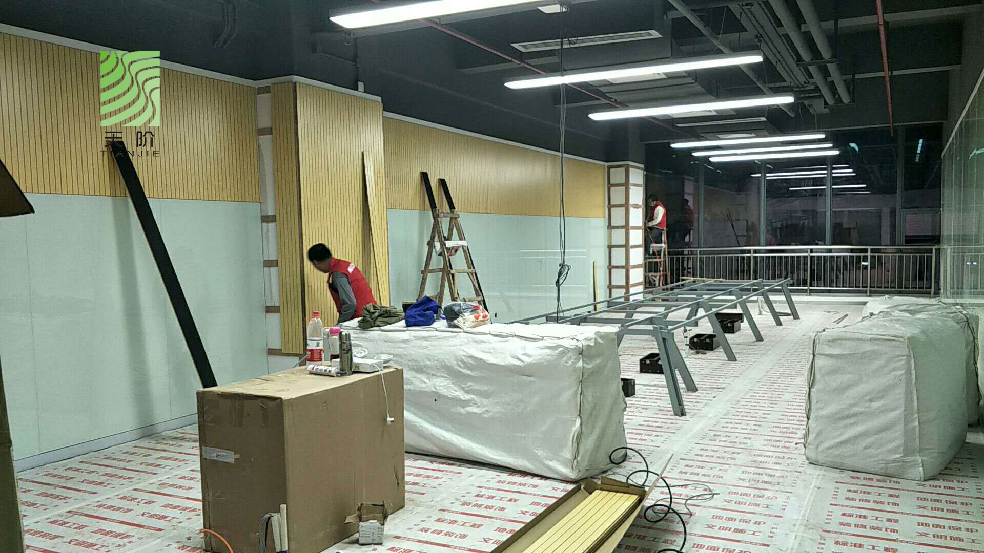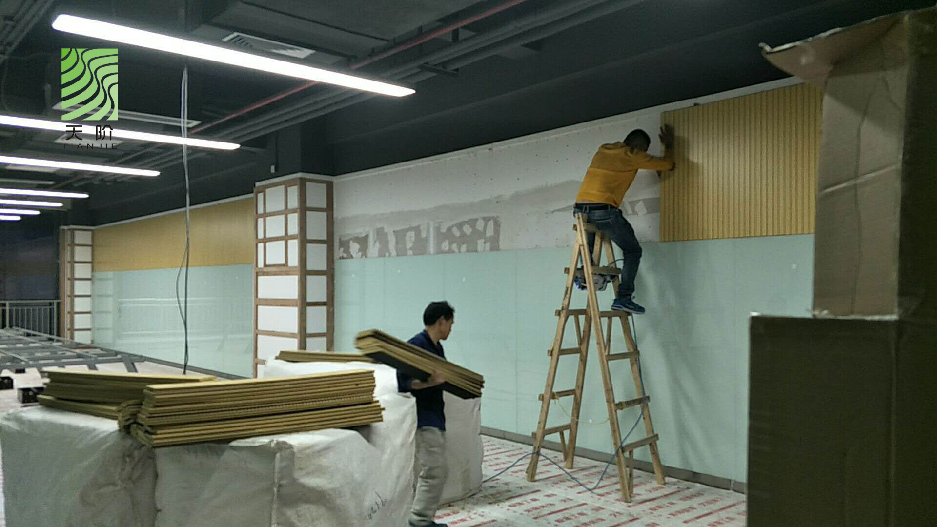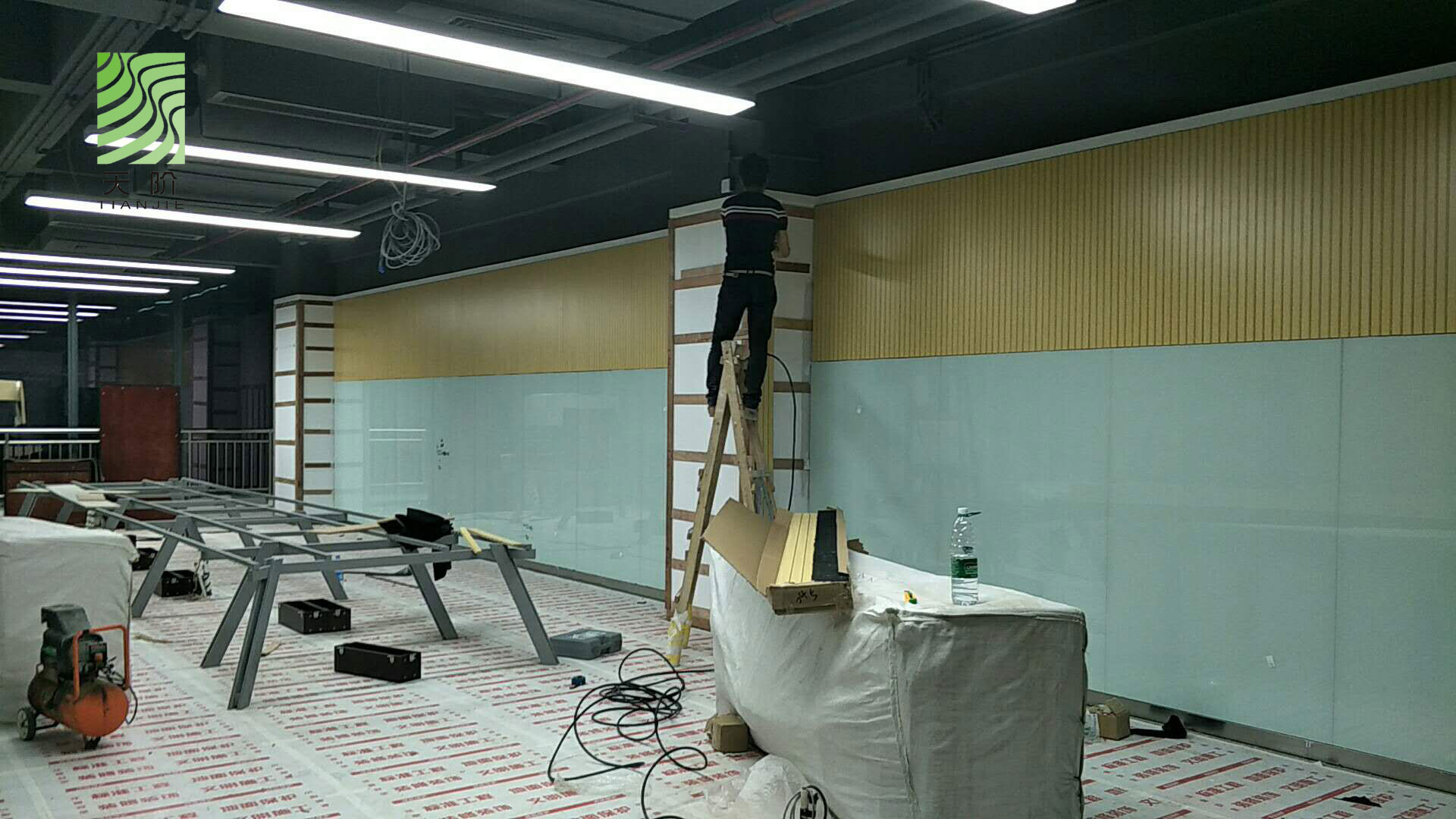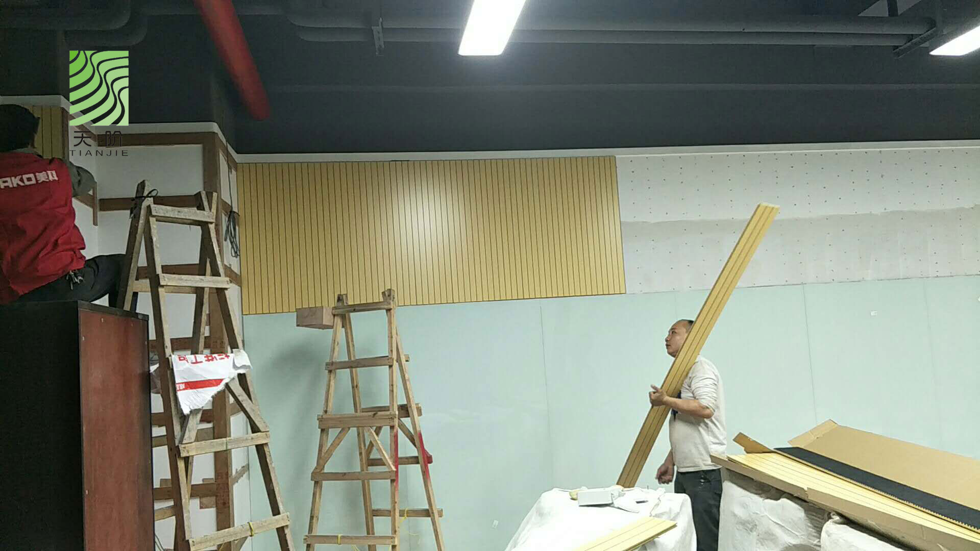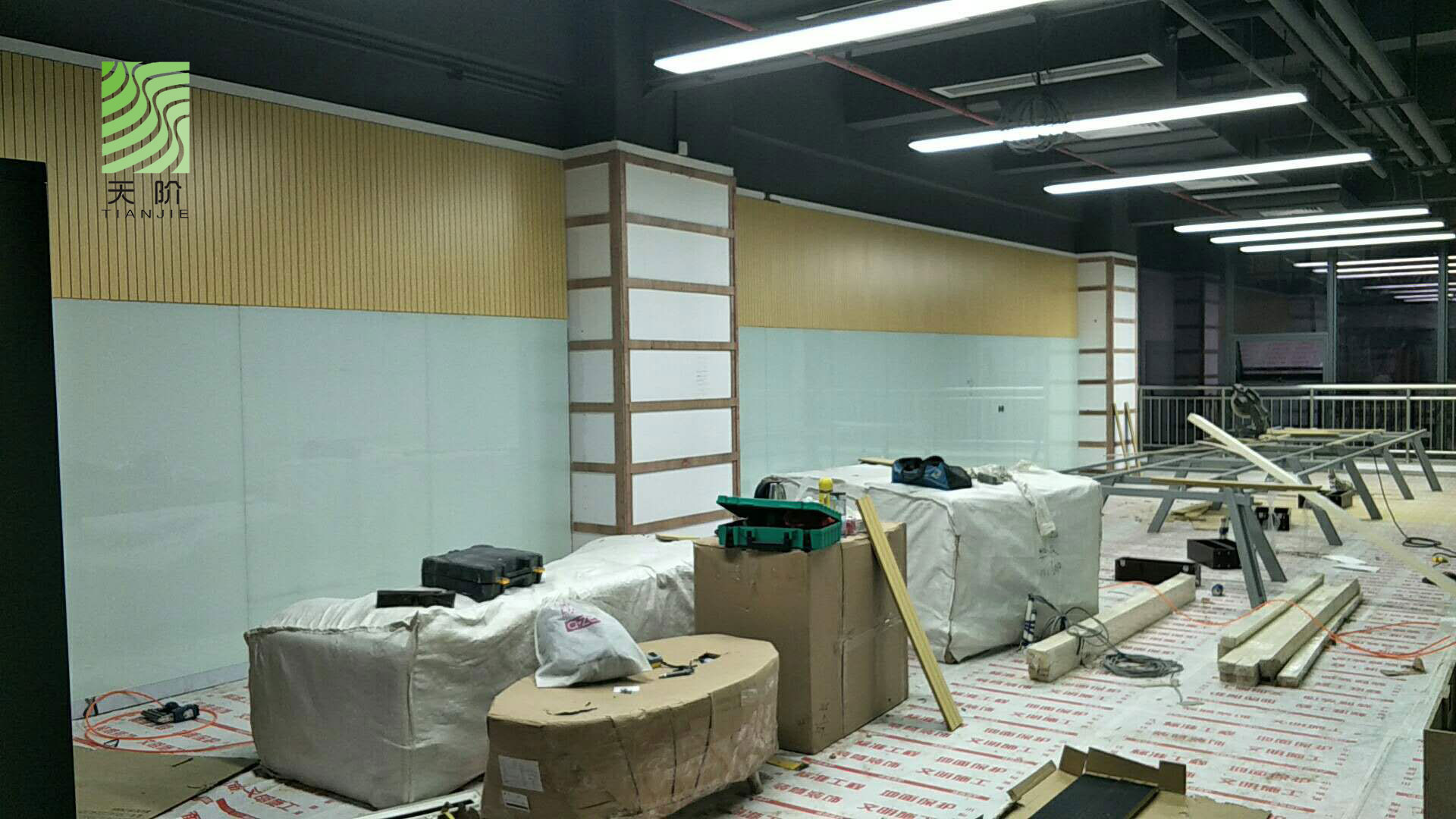 東莞藍(lán)思科技有限公司辦公室經(jīng)和多家吸音板公司對比,最終選用了天階吸音板,安裝效果圖如下: