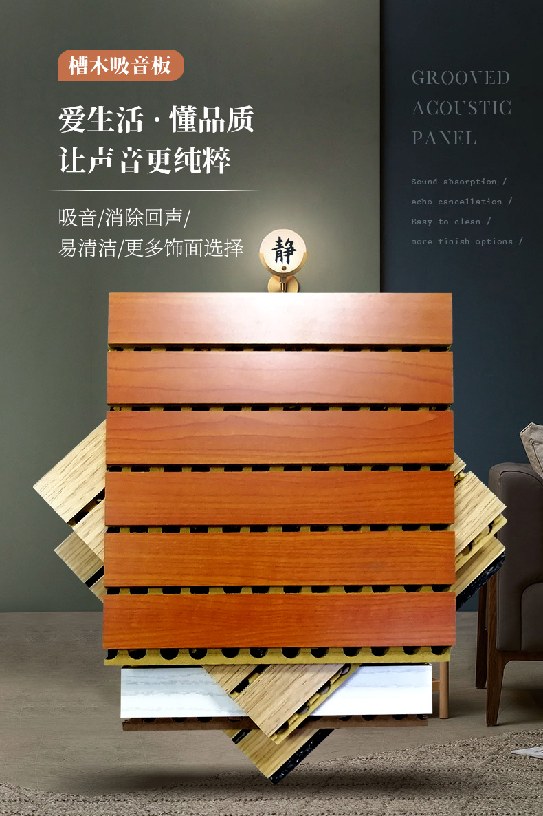 本公司專業(yè)生產(chǎn)木質(zhì)吸音板,布藝吸聲板、吸音軟包、木絲吸音板、聚酯纖維吸聲板、隔音板、空間吸聲體、擴(kuò)散體、隔音材料與聲學(xué)活動(dòng)隔斷、固定高隔間等多種聲學(xué)品類。