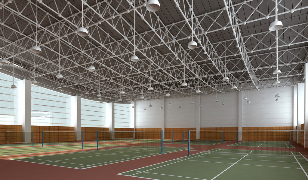 ⒉在拱形網(wǎng)架下面吊掛大面積的吸聲體。這方法曾用于北京市城北體育館和廣州中山紀念堂,效果良好。但用于弧形拱頂或采用透光屋頂材料的體育館,同樣影響觀感,同時還影響原來已設計或安裝好的照明燈具位置需要改變,不可取。