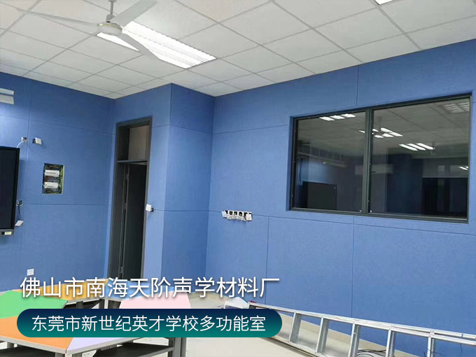 東莞市鳳崗鎮(zhèn)鳳崗新世紀(jì)英才學(xué)校錄播室項目,選用活力的藍(lán)色聚酯纖維吸音板,減少錄入回聲、雜音。