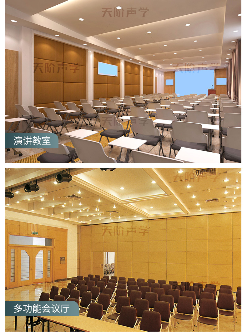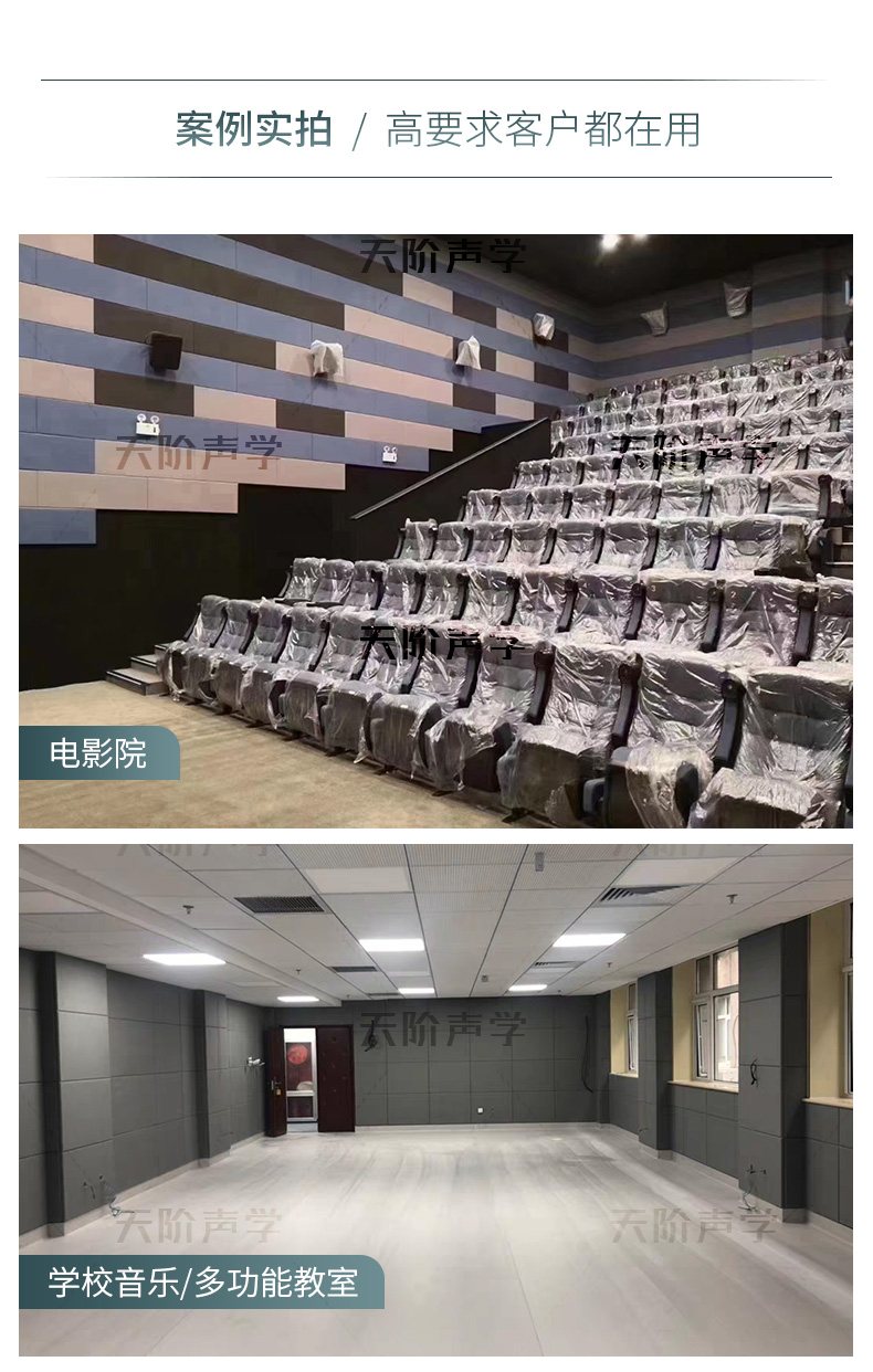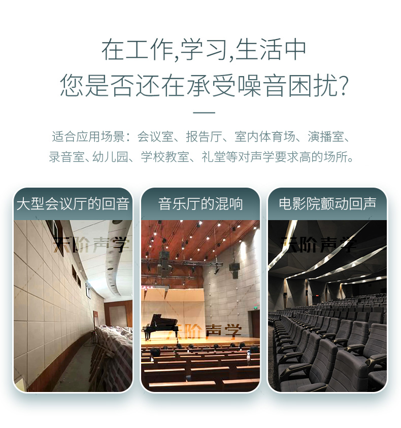 適用場所:詢問室、會議室、報告廳、學(xué)校教室、演播室、錄音室、樂隊、練習(xí)室、室內(nèi)體育場、禮堂等對聲學(xué)要求高的場所。
