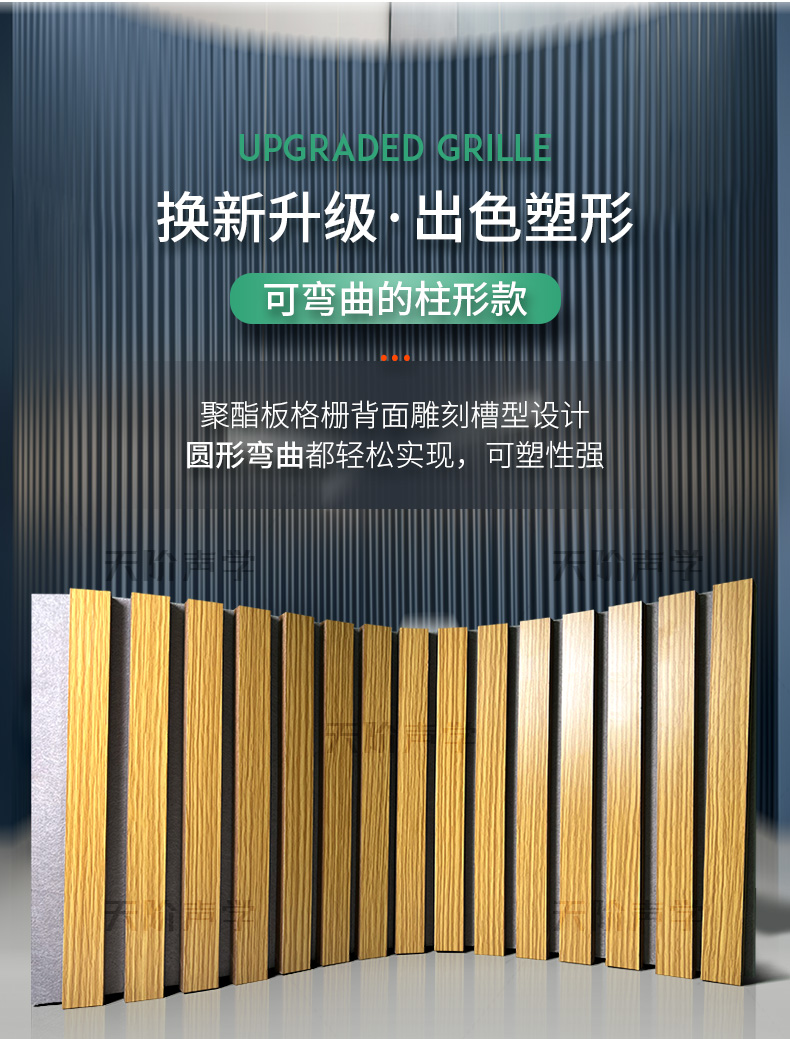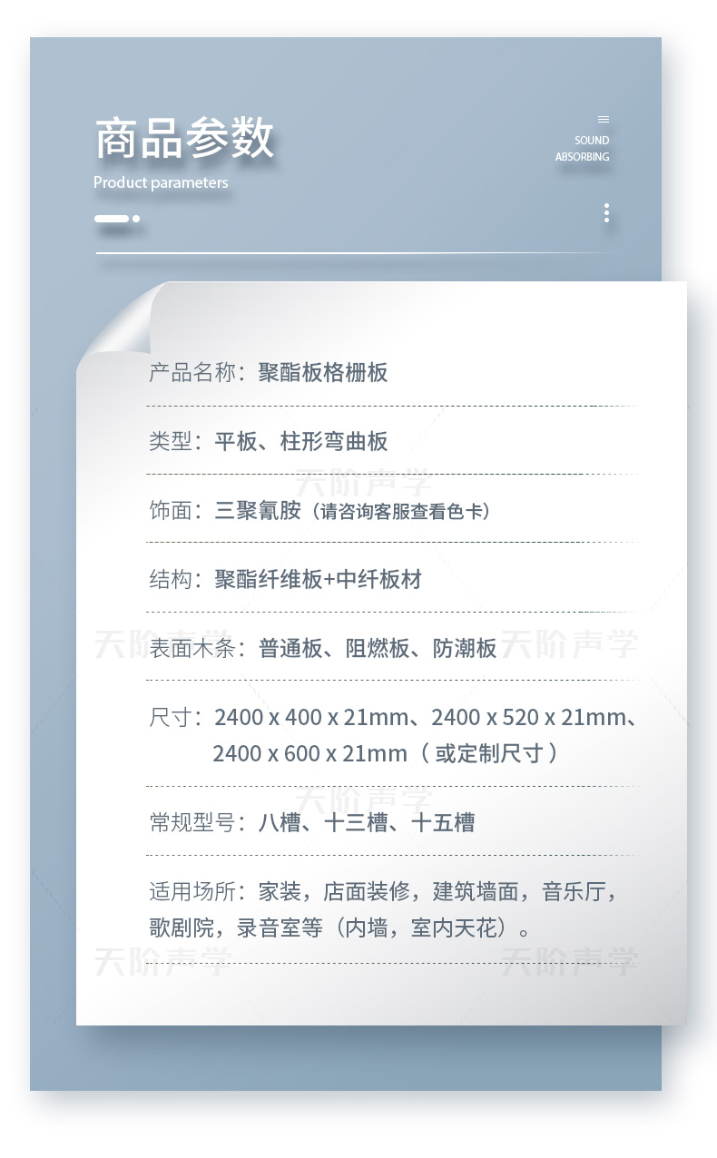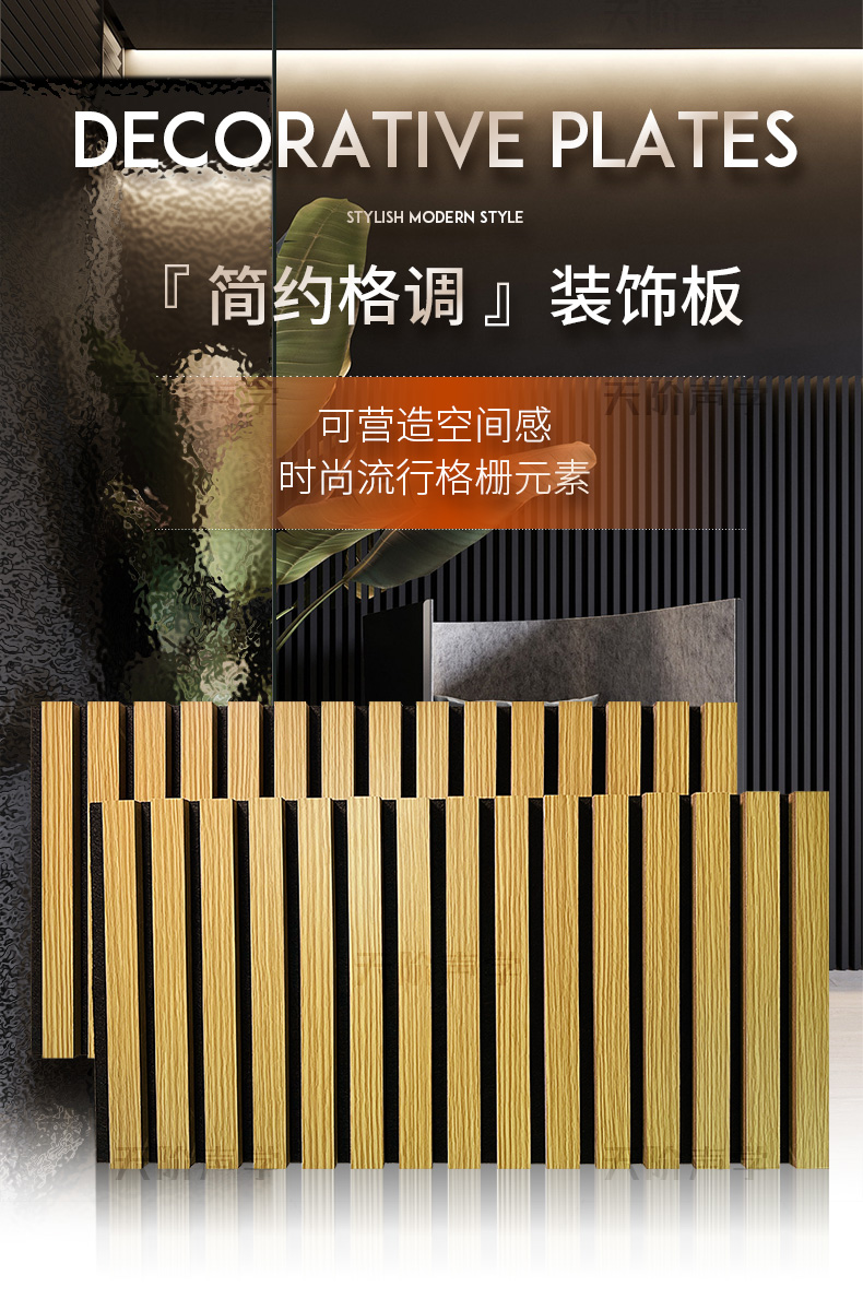 您現(xiàn)在的位置首頁(yè) ? 槽木木質(zhì)吸音板 - 軟包 - 防火吸音板 - 聲學(xué)產(chǎn)品 ? 格柵板背景墻聚酯板格柵板