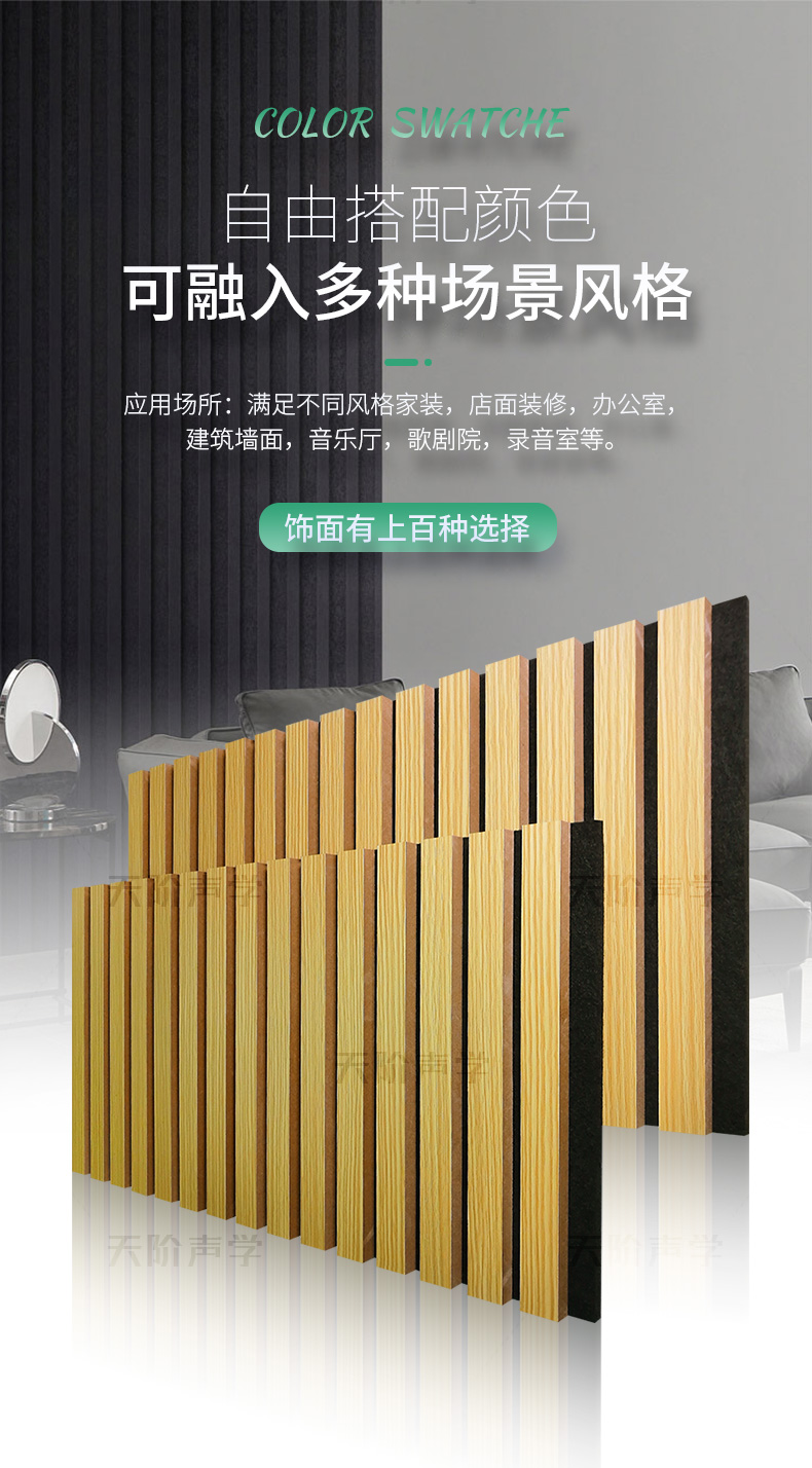 適用于多種場(chǎng)所:多種飾面,滿足不同風(fēng)格家裝,店面裝修,辦公室,建筑墻面,廣告牌制作,音樂(lè)廳,歌劇院,錄音室等(內(nèi)外墻,室內(nèi)天花)。